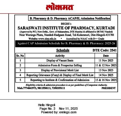 Announcements : ● Admission to D. Pharm & B. Pharm for academic year 2025-26 has been started